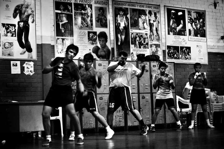 Gimnasio de la Federación Salvadoreña de Boxeo en el Palacio de los Deportes. En las paredes cuelgan carteles con fotografías de las glorias nacionales como El Chuvalo Cubías probablemente el más exitoso de los boxeadores salvadoreños por sus logros como profesional. A nivel amateur, los máximos logros han sido 2 medallas de bronce en juegos panamericanos.