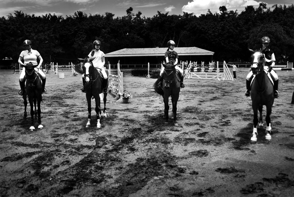 Antes de una competencia de salto, los participantes salen a reconocer la disposición de los 15 obstáculos que se deben saltar en un orden establecido por el diseñador de la ruta. En cada competencia es diferente. Además del salto, en los Olímpicos participan otras dos disciplinas: el adiestramiento, que consiste en una prueba de habilidades y elegancia de jinetes y caballos sin saltar de obstáculos, y la prueba completa, en la que los competidores deben realizar juntas las pruebas de salto, adiestramiento y una carrera a campo traviesa con obstáculos naturales como setos, troncos y lagunas. Las tres disciplinas se practican en El Salvador, pero la de salto es la más atractiva para los jóvenes.
