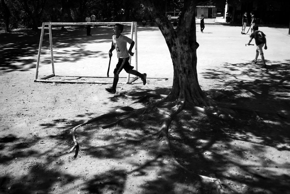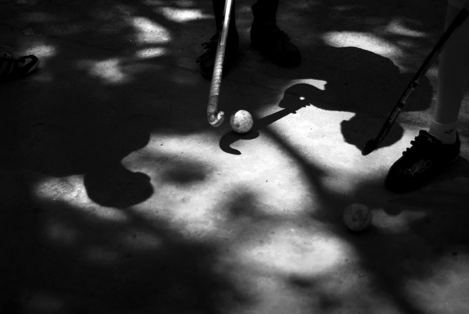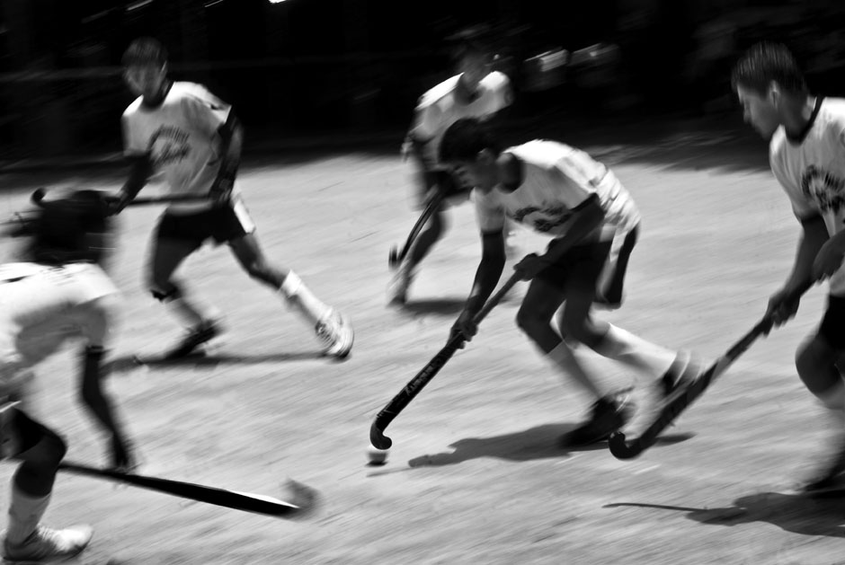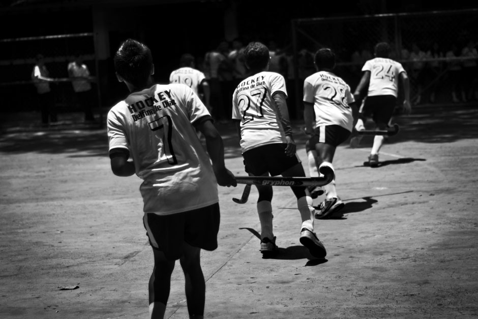 Alumnos del Centro Escolar Delfina de Díaz, de Guazapa, entrenan en el patio de la institución. La historia del hockey en El Salvador inicia en 2003 con la visita de un equipo juvenil de Quintana Roo, México, que dio una gira de exhibición y clases durante tres días en San Salvador. Todo fue iniciativa del entrenador del equipo, de origen paquistaní, que sabía que en Centroamérica no se conocía este deporte. El Comité Olímpico de El Salvador se interesó y con ayuda de la Federación Internacional de Hockey envió a un promotor a capacitarse en Argentina. Este promotor regresó a multiplicar lo aprendido y a formar las bases para crear equipos en escuelas y colegios privados. Ya para 2006 la Federación Internacional de Hockey admitió a El Salvador como miembro federado.