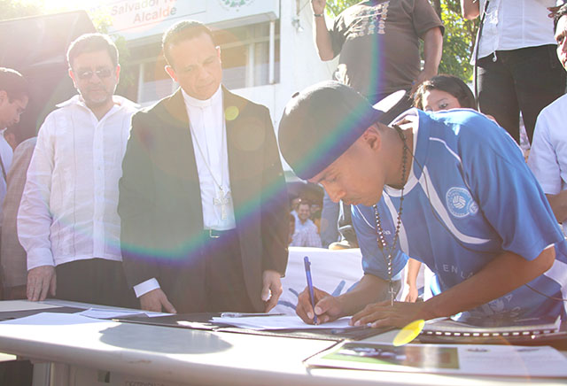 Aparecen por primera vez en escena el obispo castrense y policial Fabio Colindres y el ex guerrillero Raúl Mijango. En la sede de la nunciatura explicaron que al amparo de la Iglesia Católica los pandilleros habían decidido dejar de matarse entre sí. Mijango calificó lo ocurrido como un "milagro" y aseguraron que ambos tenían años visitando la prisión y que por eso fueron las pandillas quienes los buscaron para que atestiguaran el proceso. El obispo aseguró que esto no estaba relacionado con el traslado de pandilleros y que ellos no eran capaces de recordar los nombres de los pandilleros que habían gestado el milagro porque "Nunca hemos tenido el morbo de hacer listas de nombres".<br />